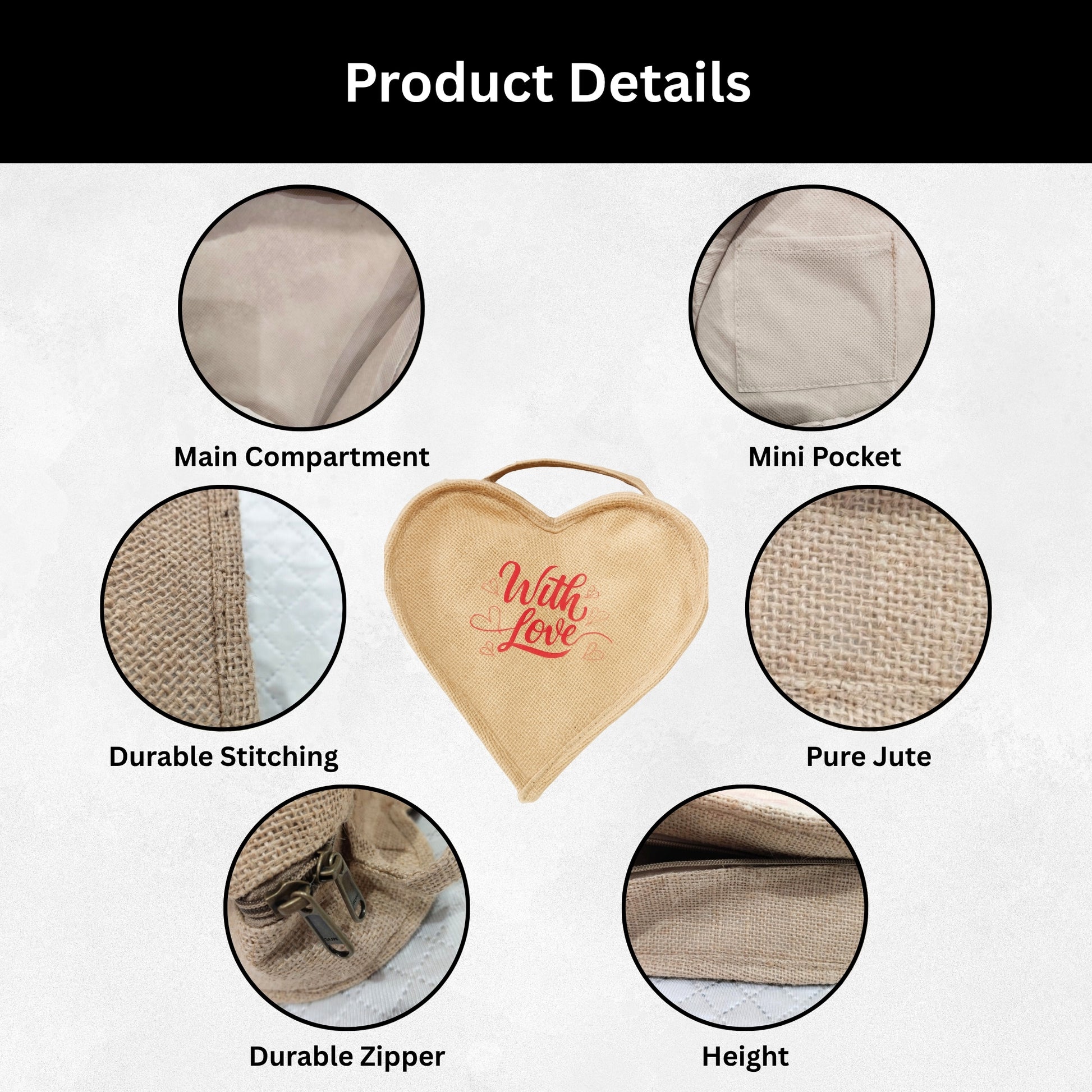 Show your love with this eco-friendly heart-shaped jute bag – a perfect blend of style, durability, and sustainability. Made with 4-layered material (Jute Cloth, PP Coating, PU Rubber, and Non-Woven Cloth 120 GSM), this bag is designed to be strong, long-lasting, and reusable.